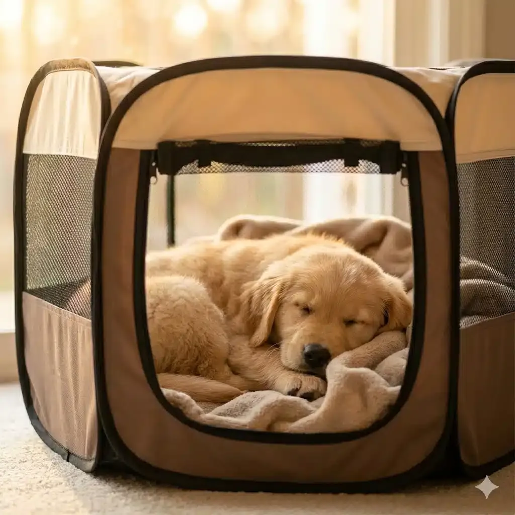 - Tipp für Welpen: Eine Hundebox (Zimmerkennel) ist goldwert. Sie hilft bei der Stubenreinheit (Hunde beschmutzen ihr eigenes Nest nicht gerne) und dient als sichere Höhle, um zur Ruhe zu kommen. Gewöhne ihn positiv und langsam daran!